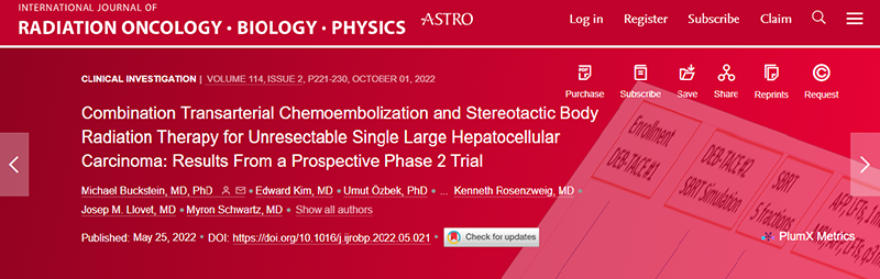 Badanie 2 fazy (32 pacjentów) opisujące wyniki leczenia kombinowanego: przeztętniczej chemoembolizacji (TACE) oraz radioterapii sterotaktycznej (SBRT) u pacjentów z wczesnym stadium raka wątrobowokomórkowego (HCC - BCLC A) niekwalifikujących się do zabiegu operacyjnego z guzem o wymiarach od 4 do 7 cm. Uzyskano bardzo obiecujący wskaźnik obiektywnych odpowiedzi (ORR) przy połączeniu TACE i SBRT, co przekładało się na poprawę PFS i OS. Uzasadnia to celowość przeprowadzenia badań 2 i 3 fazy.